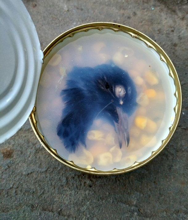 Называется, приготовила салатик... Ничего не подозревая, открываю этим вечером банку кукурузы....а там, ни много ни мало, ГОЛОВА ПТИЦЫ!