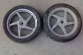 А какой диск твой из предоставленных на фото?  Если самый правый, то за его ремонт я возьму 250 грн с покраской, можешь присылать. И совет на будущее: минимум два раза в неделю проверяй давление в шинах, перед 1,7; зад 2,5 кг/см. А у тебя была максимум единица, да и ехал наверняка вдвоём.