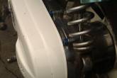Убираем болт крепления амортизатора и, подставив под раму опору, отводим амортизатор в сторону.
