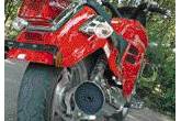 Ярко-красный окрас и солидный пластиковый обвес скутер-байка, попавшего ко мне на тест, несколько озадачивал. Еще больше меня заинтриговало наличие на байке встроенной акустической системы! Если по посадке и геометрии шасси он был чоппером, то все остальные признаки говорили о его скутерных составляющих. Красный цвет больше подходит спортивному мотоциклу, а защитные элементы, выпирающие по бокам, и акустическая система — туристу. Дикая смесь! И только после того, как я проехал на Альфамото V3 с десяток километров, понял, насколько легко уживаются в нем столь разные типажи.