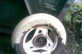 Сегодня занялся изготовлением переднего крыла и заднего подкрылка,поскольку они крайне необходимы-спереди нужен чтобы не летела грязь с колеса на внутреннюю часть радиатора,а сзади чтобы не попадала на цилиндр,свечу и датчик температуры.Задний подкрылок переделываю из имеющегося самодельного крыла,а переднее крыло делаю с нуля-чтобы особо не мудрить в качестве макета использую старое колесо,обклеял малярным скотчем и сверху положил пару слоев стеклоткани.Завтра спущу колесо,получившуюся заготовку примерно обрежу по размерам и форме,и ещё положу пару/тройку слоев.