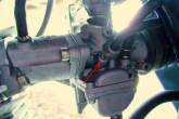 КАРБ. Прогреваем мотор до рабочей температуры, прокатившись 10-15 км. Винтом количества (белым справа)  выставляем минимально устойчивые обороты (порядка 1000-1100/мин.). Медленно  закручиваем винт качества (желтый слева), уловив момент, когда обороты начинают падать. Тогда медленно выкручиваем желтый винт, повышая этим обороты. Важно найти такое положение желтого винта, когда дальнейшее его выкручивание не приводит к повышению оборотов мотора, границу, когда мотор перестает реагировать на дальнейшее обогащение смеси – границу между оптимальной смесью и началом переобогащения, и, одновременно, между оптимальной смесью и началом обеднения. Наконец, винтом количества доводим обороты хх до рекомендуемых ( 1300-1400). При необходимости процедура повторяется неоднократно.