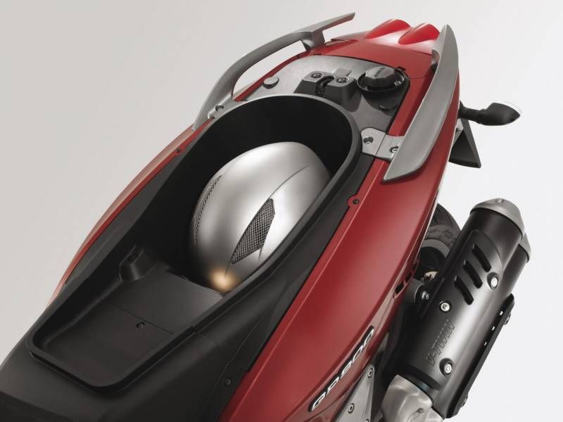 Дизайн аппарата в чем-то перекликается с мотоциклами GP-серии, благодаря этому скутер стал выглядеть немного более угловатым, получил более резкие формы и спортивный вид. Часть деталей выполнена из углеродного волокна. Аппарат также снабдили функцией съемного заднего сиденья – чтобы еще более подчеркнуть стиль GP.