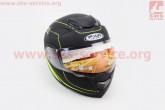 Шолом закритий з відкидним підборіддям+окуляри HF-119 L - ЧОРНИЙ матовий з зеленим малюнком Z34-Y FXW