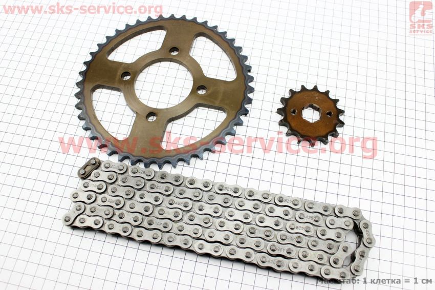 Комплект з двох зірок і ланцюга ZS125J-428H-116L+42T+15T "гартована" (в коробці) BAJAJ