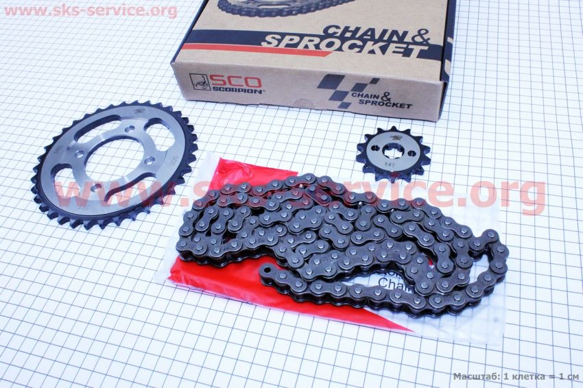 Комплект з двох зірок і ланцюга JH70-428H-116L+36T+14T "гартована" (в коробці) Delta/Alpha/Active (Viper) Scorpion